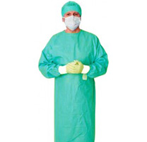 Bata para cirujano de SMS 35g. Con puño de algodón disponible en colores azul, verde. Bata para paciente en SMS de 35g. de manga corta en colores verde y azul.